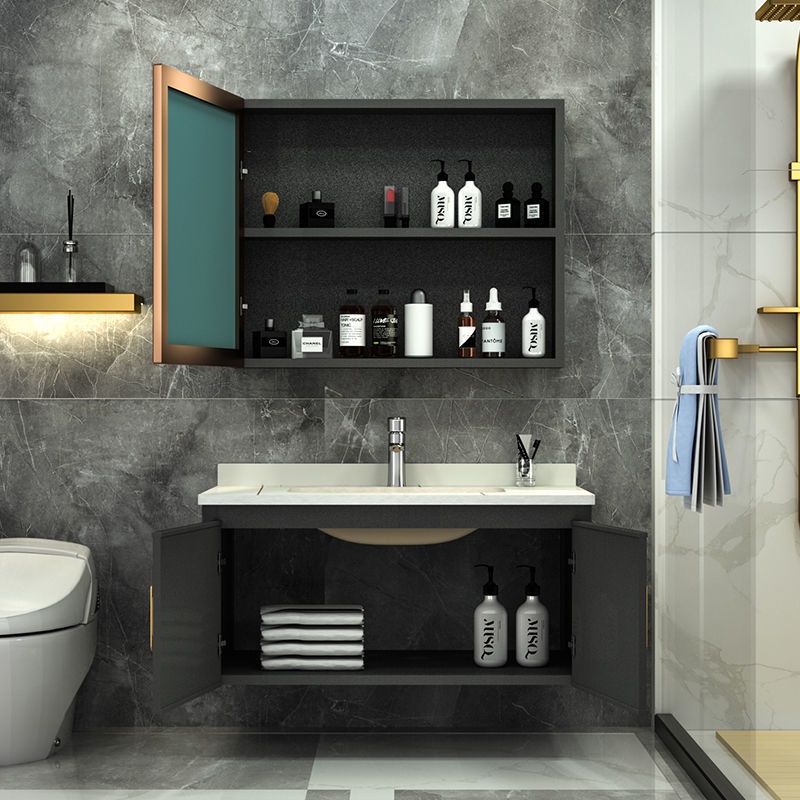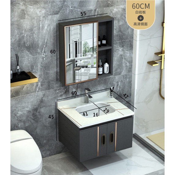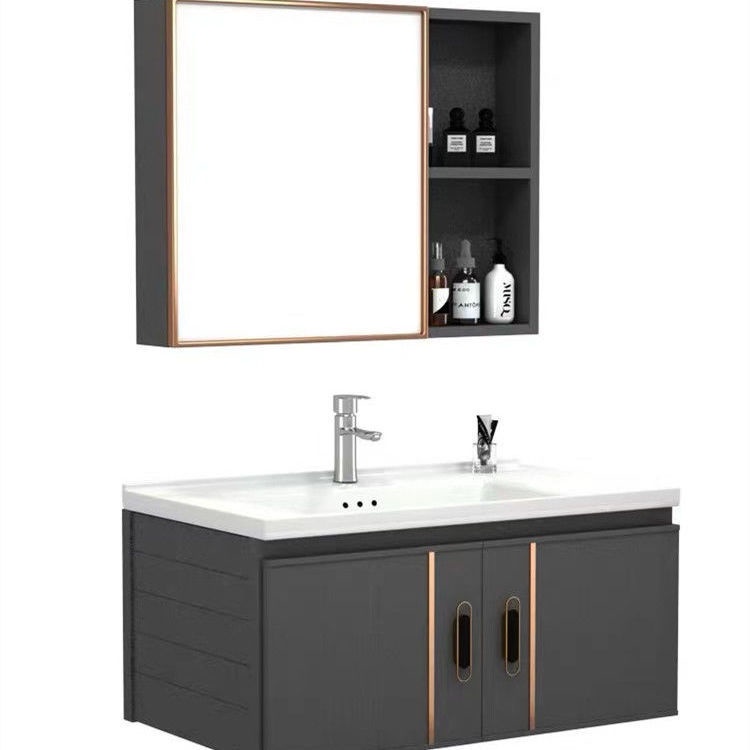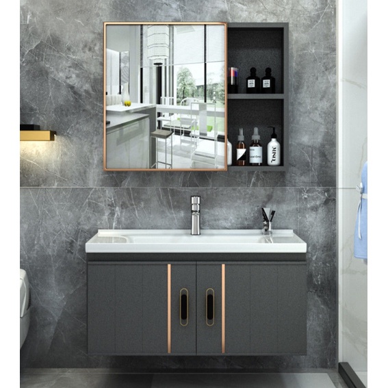 {SG Stock}vanity cabinet Aluminum Bathroom Cabinet Basin Set Ceramic Sink with Mirror and Shelf Basin