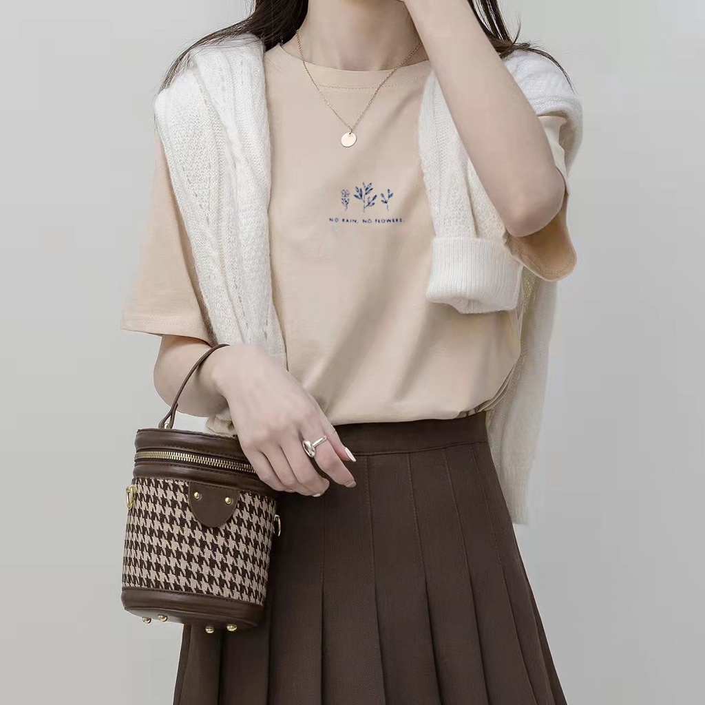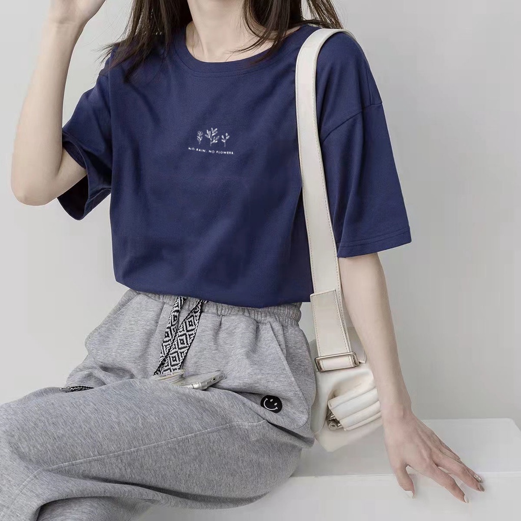 【TBB】韓版圓領短袖t恤女 夏季短袖上衣 休閒T恤 寬鬆植物印花含棉白色ins超火短袖上衣 學生半袖上衣 多色可選擇