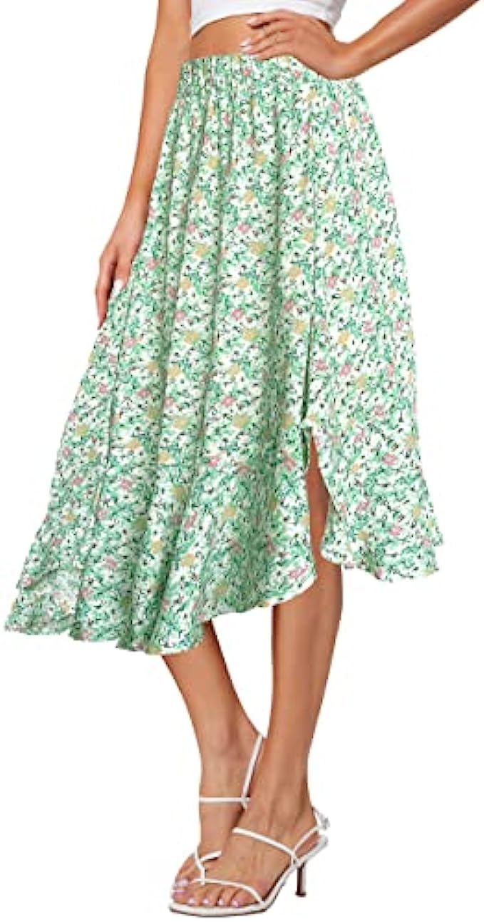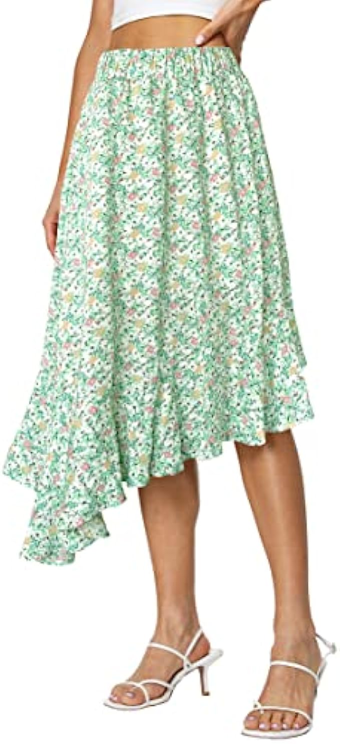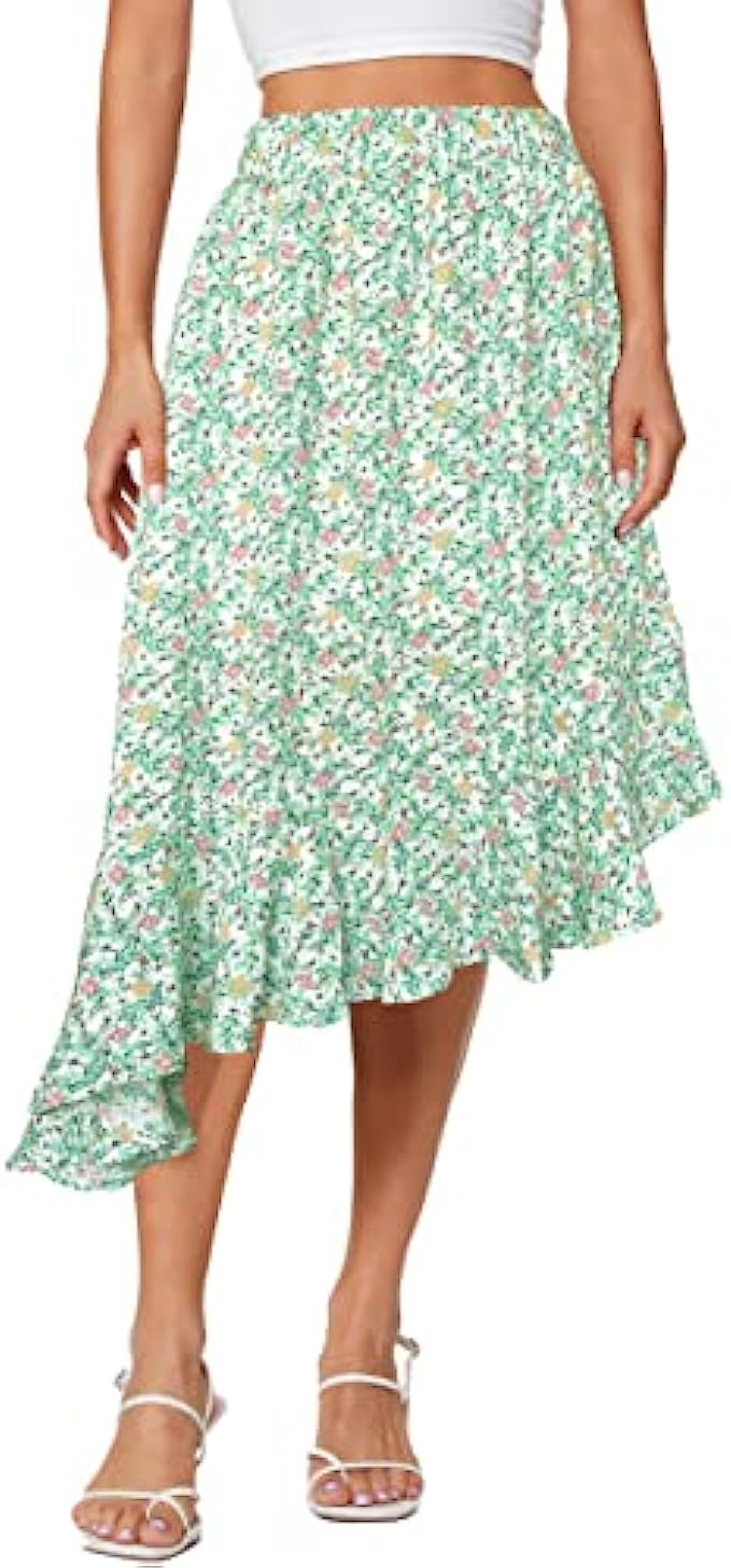 100% Cotton Imported Line Dry Elastic closure,Fabric has no stretch, The cotton meterial can breathable and comfortable. The asymmetrical ruffle hem skirt is lined,not see through.High Waist, split, floral print, flowy, casual, elegant, lightweight, breathable Fishtail makes you more attractive. Floral print makes this skirt simple but elegant and classy, helps you show your unique charming. Perfect for daily life, indoor, outdoor, work, date and party. Suitable for any occasion in late spring, summer and early fall. Machine wash or hand wash in cold water, do not bleach, hang dry
