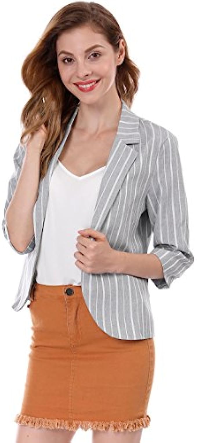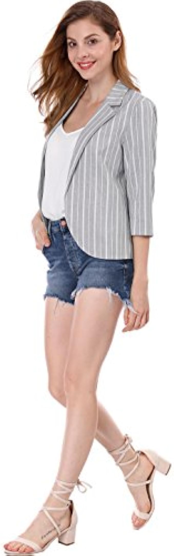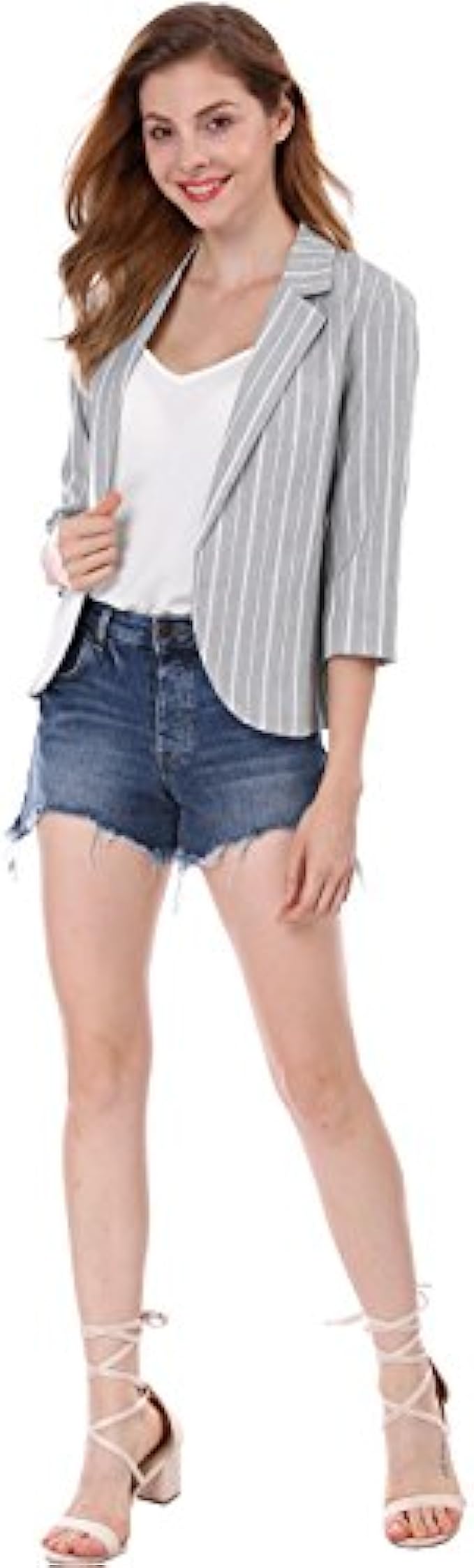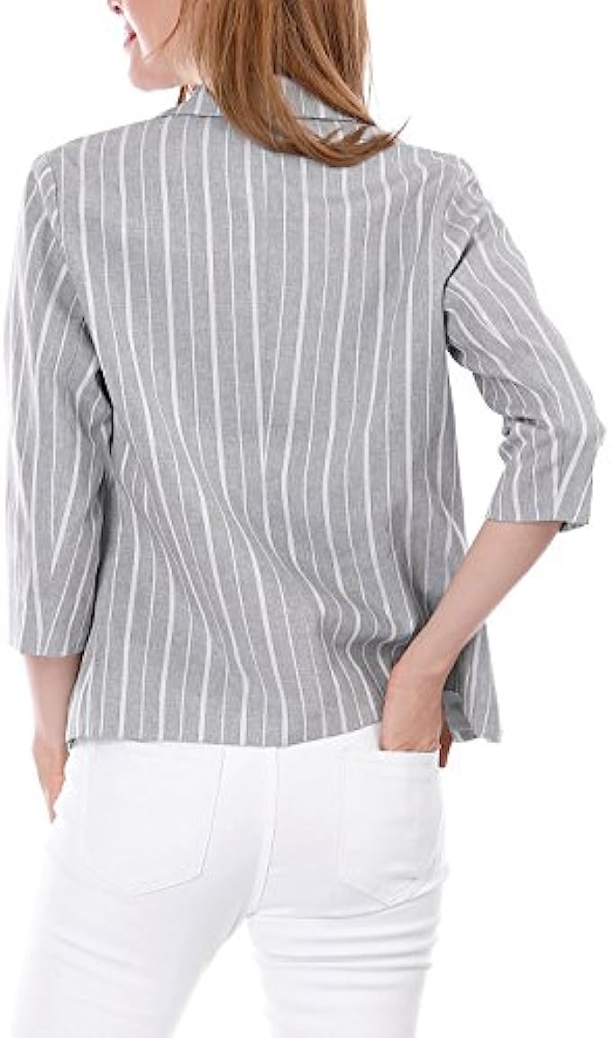 Allegra K Women's Striped 3/4 Sleeves Open Front Notched Lapel Blazer