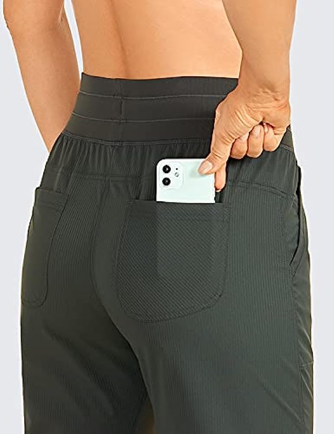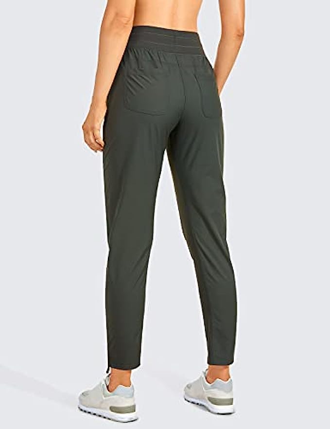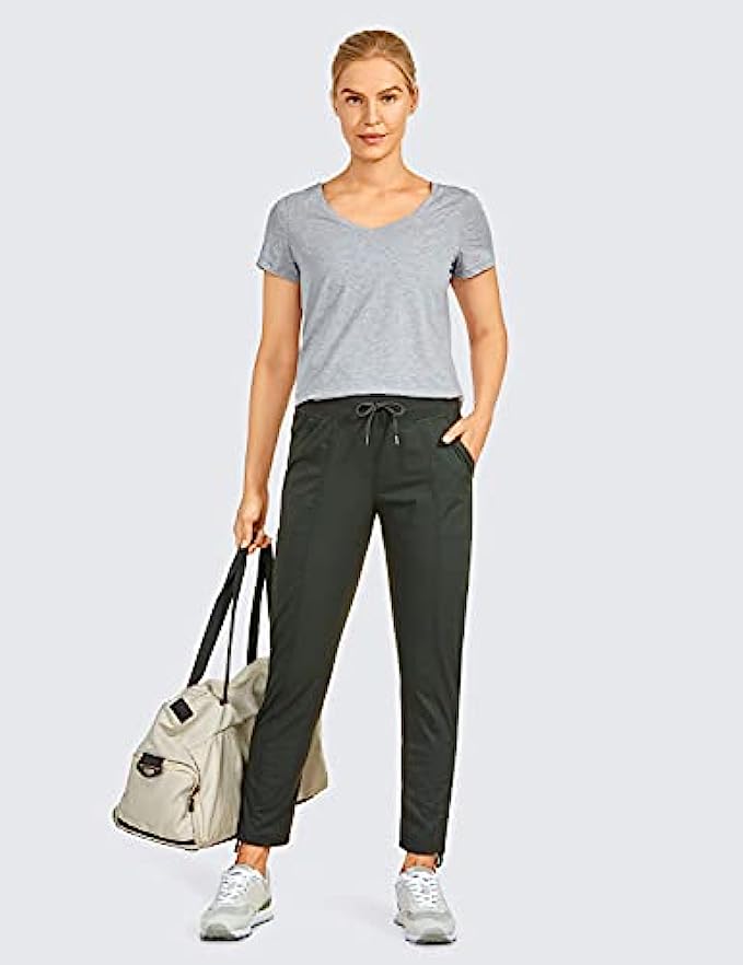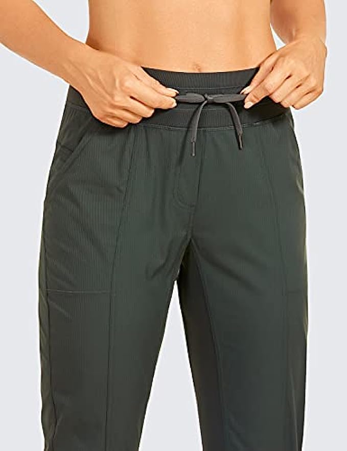 93% Polyamide, 7% Spandex Drawstring closure 25'' inseam: Intended to sit above your ankle. Lightweight casual pants made of woven vertical pinstripes fabric for a slimming look, very breathable and durable. Therefore, it is a bit stiff and structured but very quick-drying and sweat-wicking. Wide Elastic Waist Pants: Studio crop pants with two side and back pockets are featured to secure your items like keys, card and phone. The stretchy waistband is wide for no dig in or muffin top, drawcord in the waistband for customized fit. Breathable Gusset & Cinches Leg: There are elastic panels placed inner legs for more give, also increasing breathability and mobility. Drawstring ankle pants with adjustable length by cinching the drawstring on the bottom. OCCASION: Lightweight and loose fit cropped pants suitable for daily wear, jogging, travel or hiking.