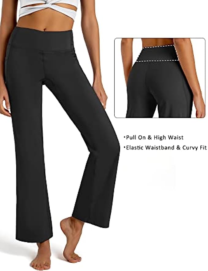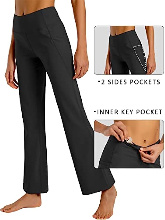 70% Polyester, 30% Spandex Imported Pull On closure ULTRA SOFT FABRIC: Double peached fabric makes yoga pants feel good in hands, designed to fit like a second skin, super cottony-soft. It can meet your expectations about flared yoga pants: comfortable, breathable, moisture-wicking and non-fading. 30% SPANDEX & SUPER ELASTIC: Much higher spandex content than most cropped yoga pants, features with great all-way stretch and shaping strength. It's also very durable because of its excellent resilient ability to return to the original shape after stretching. TWO SIDE POCKETS & ONE INNER POCKET: Three pockets can easily hold your mobile phone or other essentials. No need to worry about your personal belongings falling out during yoga. NON SEE-THROUGH & SQUAT PROOF: 4-Way Stretchy fabric lets you feel ease during yoga, no worries about the embarrassing moments, perfect for yoga, dance, workouts or everyday wear. There're cashew flower, grey camo and leopard printing pants for your choice, delivering you a charming look. DIAMOND CROTCH DESIGN: The diamond crotch design provides max comfort and freedom of movement, no camel toe, more durable and longer lasting.