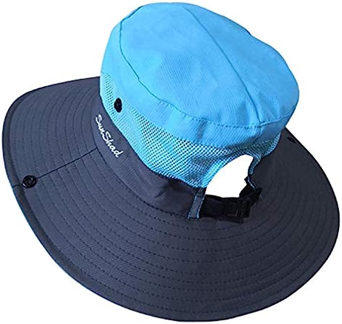 • GREAT QUALITY - 100% polyester. UV protection. Hand wash. Hang to dry. Lightweight, waterproof, foldable and packable. Drawstring to keep hat extra secure, and ponytail hole to easily wear your hair up. Mesh sides and liner for breathability and quick drying.