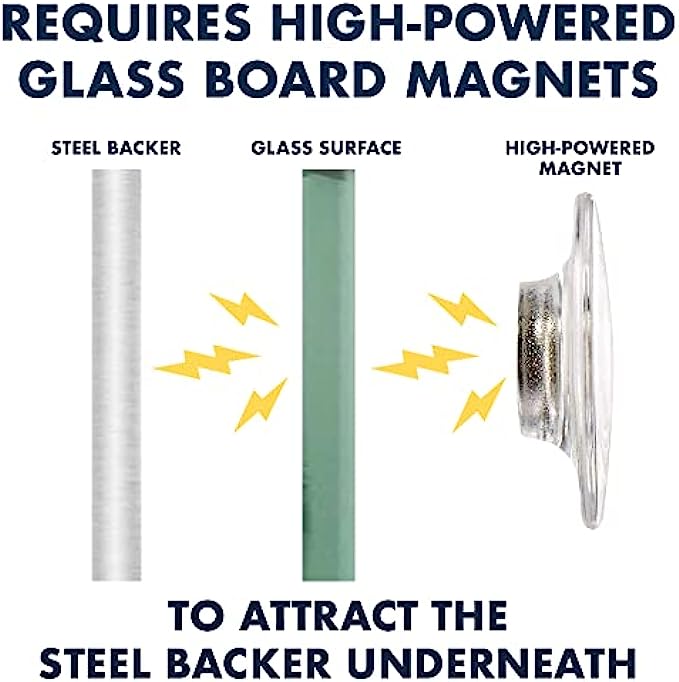 • MAGNETIC POSTING – Multifunctional steel-backed magnetic glass is great for meetings and presentations. Easily hang papers and documents instantly with the included high-powered glass board magnets.