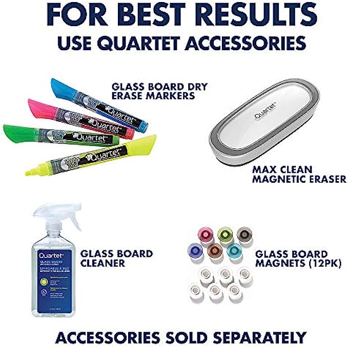 • ACCESSORIES INCLUDED – Measures 96" x 48". Comes with removable accessory tray, 1 marker and 2 high power glass board magnets. For best results use Quartet Glass Board Accessories, sold separately.
