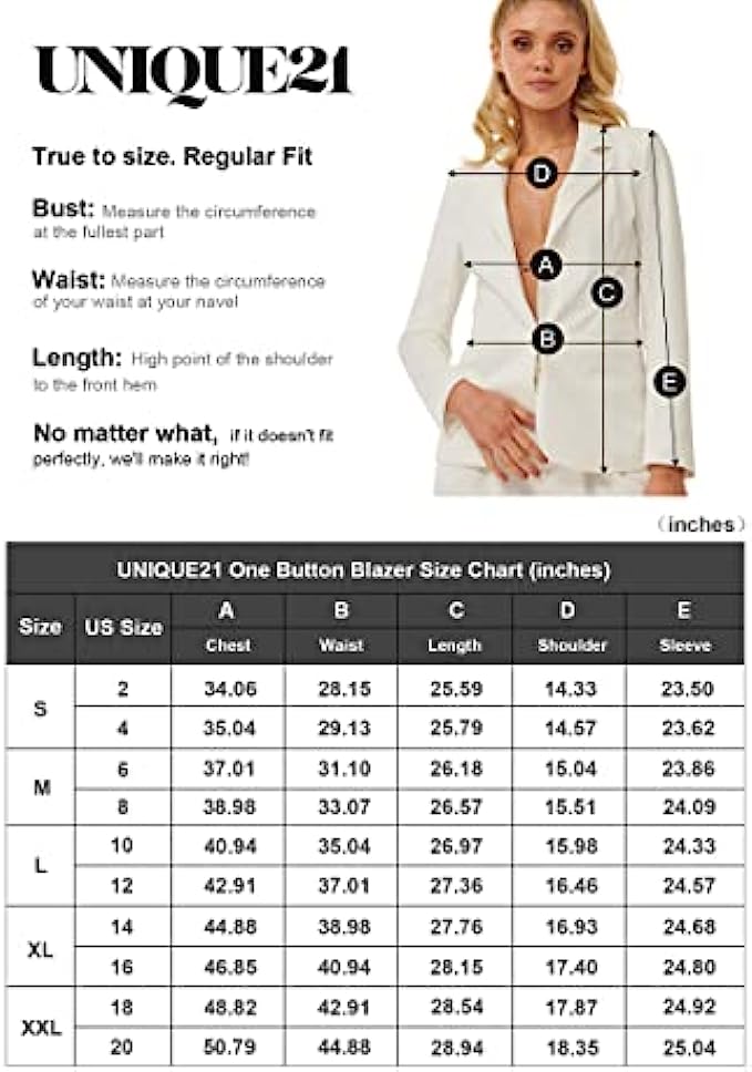 100% Polyester Button closure Machine Wash Amp up your attitude in your new season wardrobe with this classic style blazer. Featuring single-breasted design, we're obsessed. Keep the look effortlessly casual and team with comfy bottoms, a crop top, and chunky kicks. Classic Boyfriend Blazer Design by UNIQUE21 Length approx 66cm/26" (Based on a sample size US 4) Size runs small, we recommend sizing up. Please refer to the size chart before purchasing. Model wears size US 4, Model Height - 5ft 3.5"