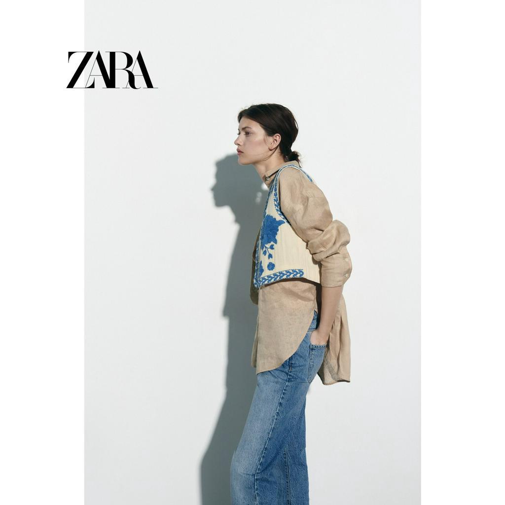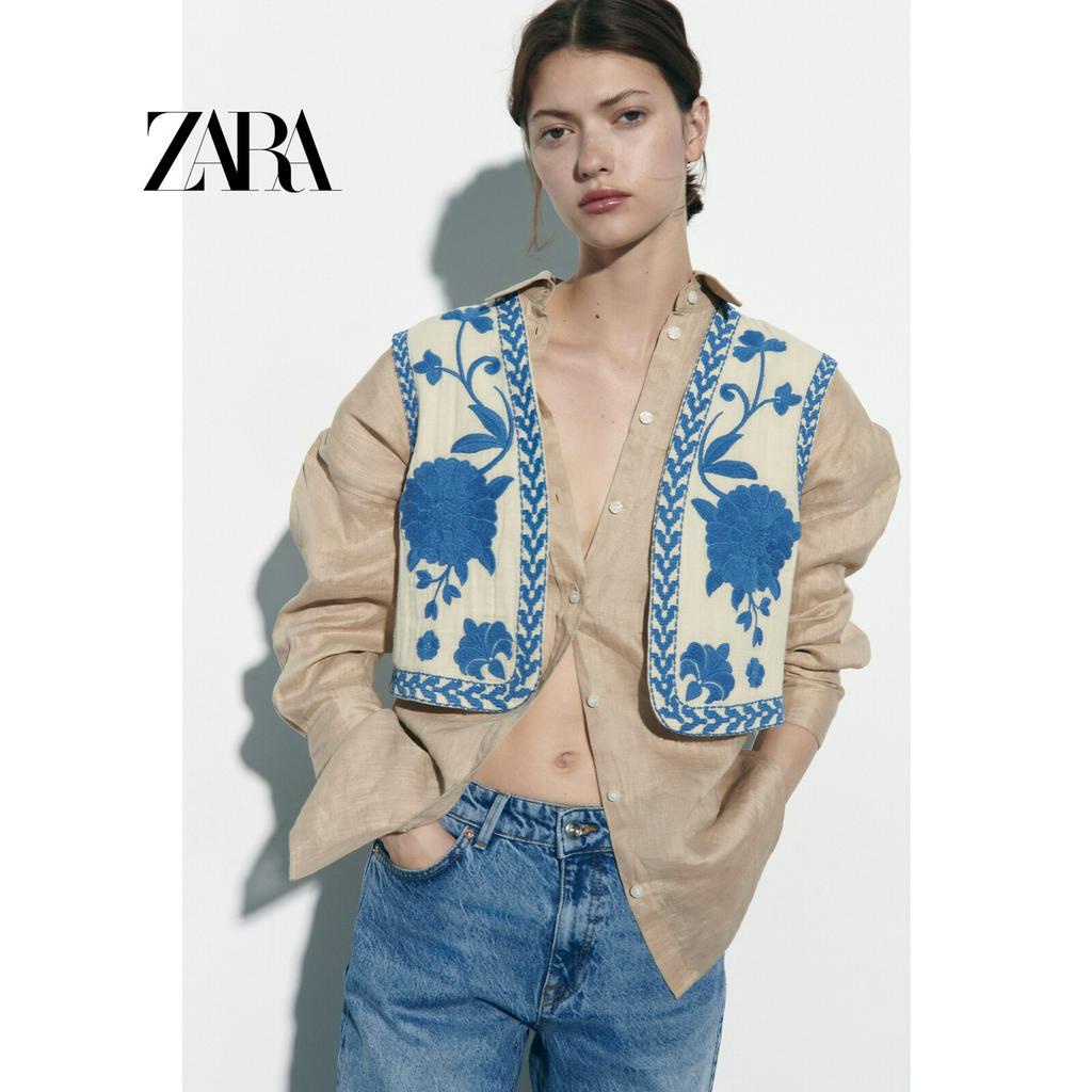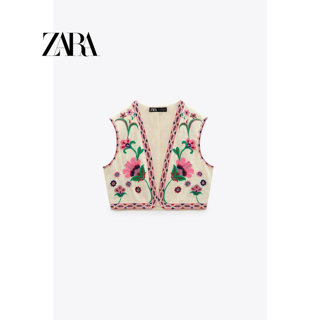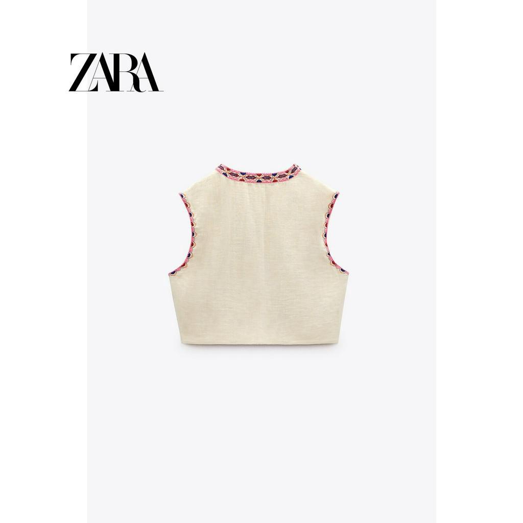 ZARA New Women's Embroidered Open Front Sleeveless Cotton Tank Top 6895023 250