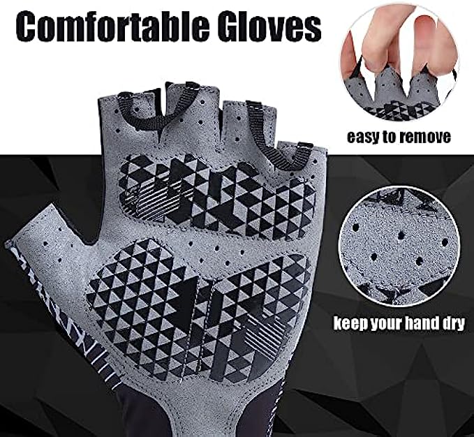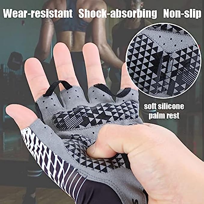 【Durable Sports Gloves】Silicone shock-absorbing palm pads only on the prominent part of the palm can protect your hands from blisters and calluses, and can also reduce the discomfort of the whole glove palm pads.The palm design maximizes your grip. Ideal for general workout, weight lifting, exercise, gym training and cycling.